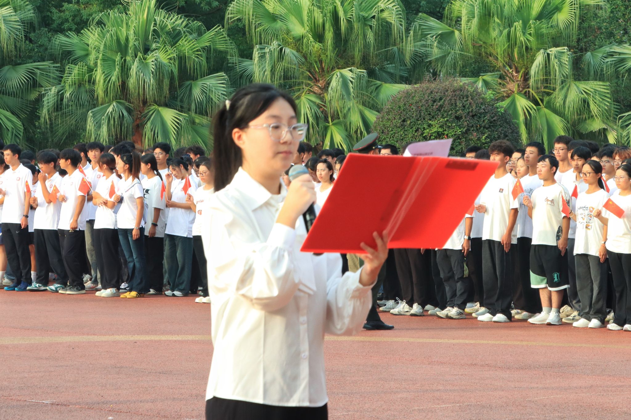 仪式上,2024级新闻学二班吴卓慧作为优秀学生代表在国旗下献词,她结合衡阳抗战记忆,分享自身在红色师范熏陶下钻研专业、参与志愿服务并获摄影与海报设计奖项的经历,鼓励新生以史为鉴、锚定报国方向。