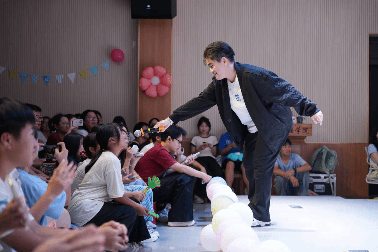10月11日晚,新闻与传播学院2025级新生迎新会在仁智楼一楼演播厅顺利举行。