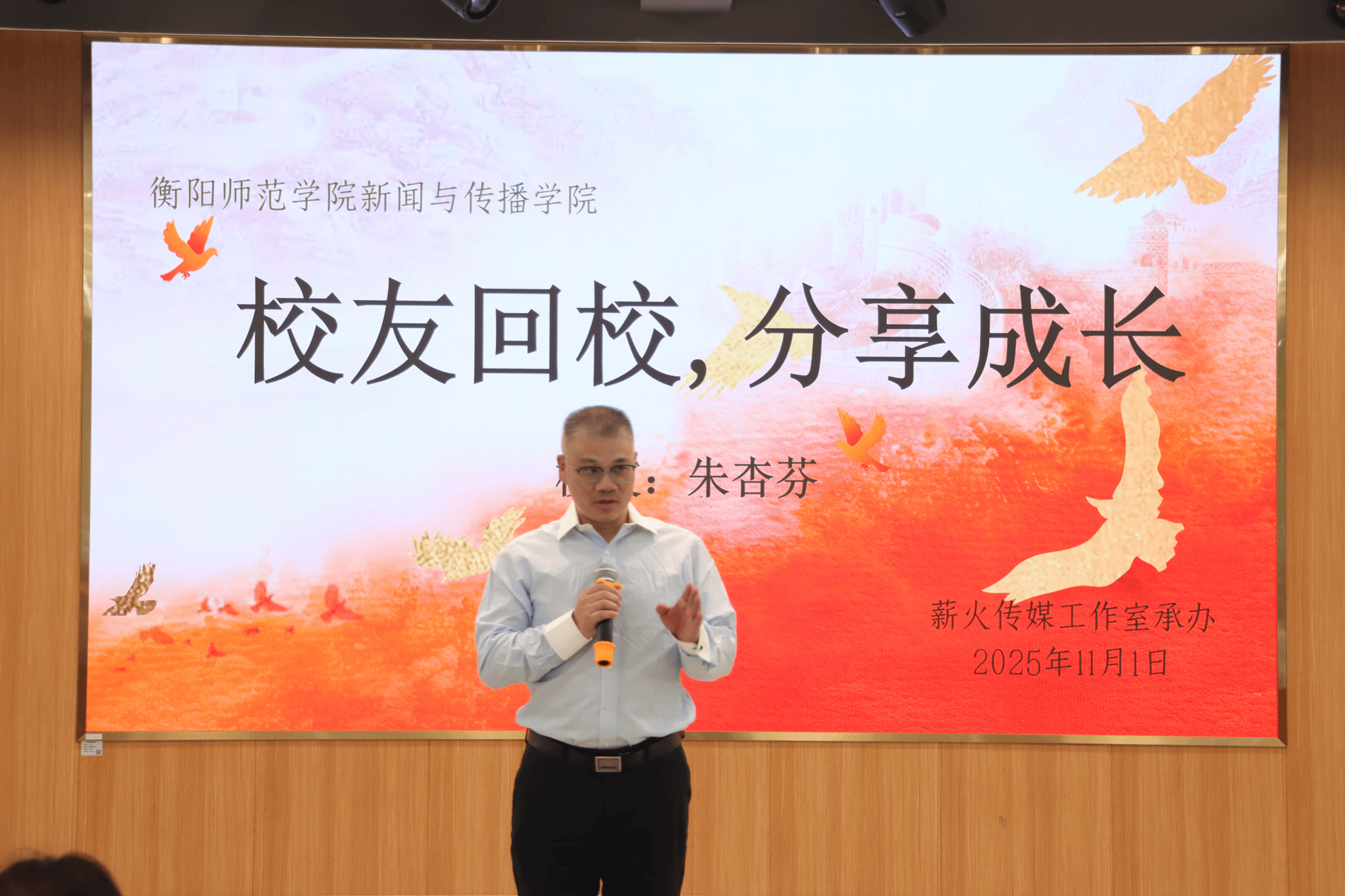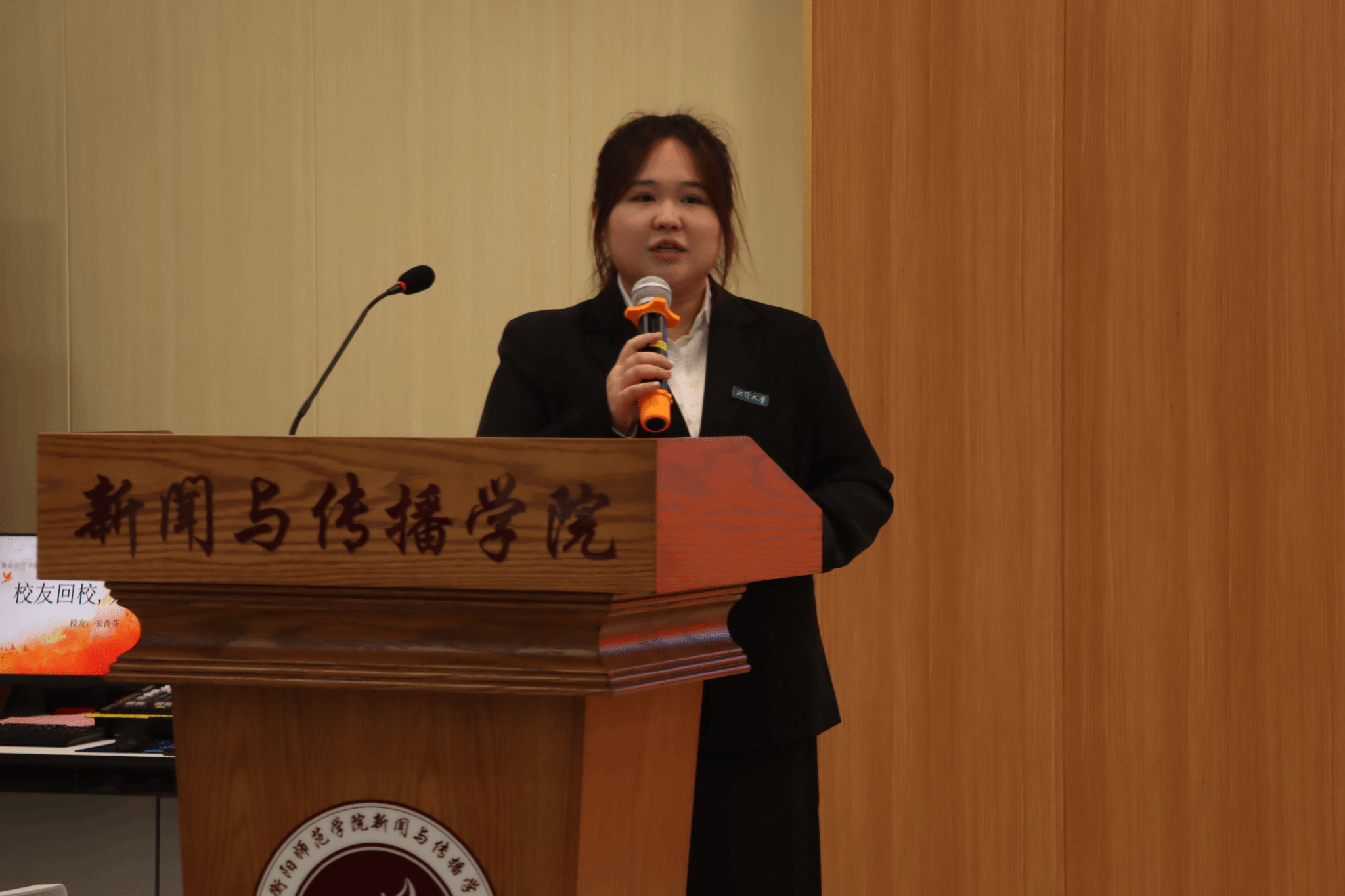 11月1日,新闻与传播学院在仁智楼A107举行经验分享会,2020级校友朱杏芬主讲,新闻与传播学院副院长罗兵出席,薪火传媒工作室成员以及2024级新闻学部分同学参会。