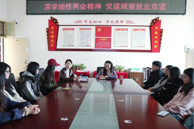 最后,党总支书记何芳就党建如何赋能就业攻坚提出三个要求:一是以党建引领明方向,筑牢思想根基。要将学习贯彻两会精神融入就业指导全过程,通过党支部主题党日、就业专题党课等形式,解读就业政策、分析行业形势,引导毕业生树立正确的就业观;二是以党建聚力强保障,拓宽就业渠道。充分发挥党组织联动作用,动员全体党员教师、校友发挥先锋模范作用,深挖优质岗位资源,对接行业领域,精准推送岗位信息;三是以党建暖心优服务,破解求职难题。组建“就业帮扶专班”,针对不同专业、不同求职阶段的毕业生,开展分类指导、技能培训、简历优化等精准服务。对就业困难毕业生,实行“一对一”结对帮扶,落实各项帮扶政策。