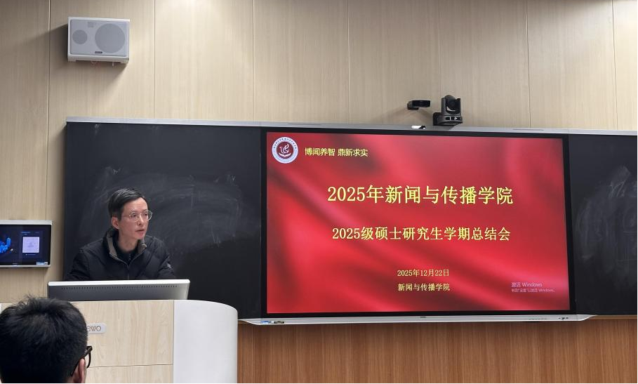 为全面梳理本学期学习实践成果,明确下一阶段发展方向,2025年12月22日下午,新闻与传播学院2025级研究生学期工作总结会于文科楼A306圆满召开。副院长邓庄、熊雅静老师及2025级全体研究生齐聚一堂,共话成长,共商发展。