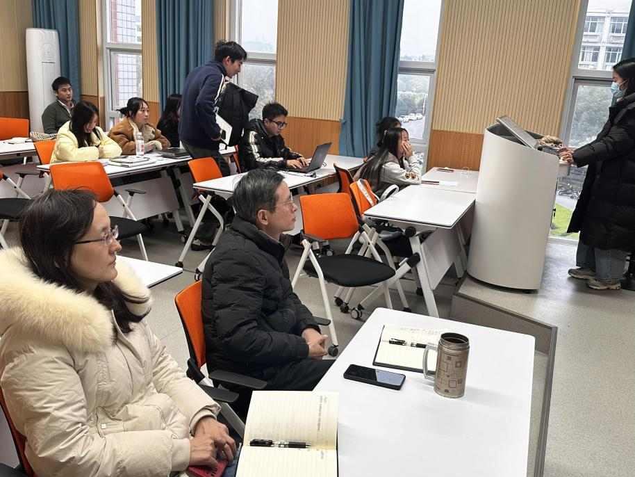 邓庄副院长认真听取了每位同学的汇报,他对同学们本学期的成长与进步给予高度评价,并对后续学习实践工作提出三点要求:一是要持续深化文献阅读,在精读与泛读结合中培养问题意识,提升研究能力;二是要重视专业实践,将专业竞赛作为提升研究生专业实践能力的抓手,争取获得省级专业竞赛奖项;三是要加快毕业论文推进节奏,合理规划各阶段任务,确保研究工作有序开展。