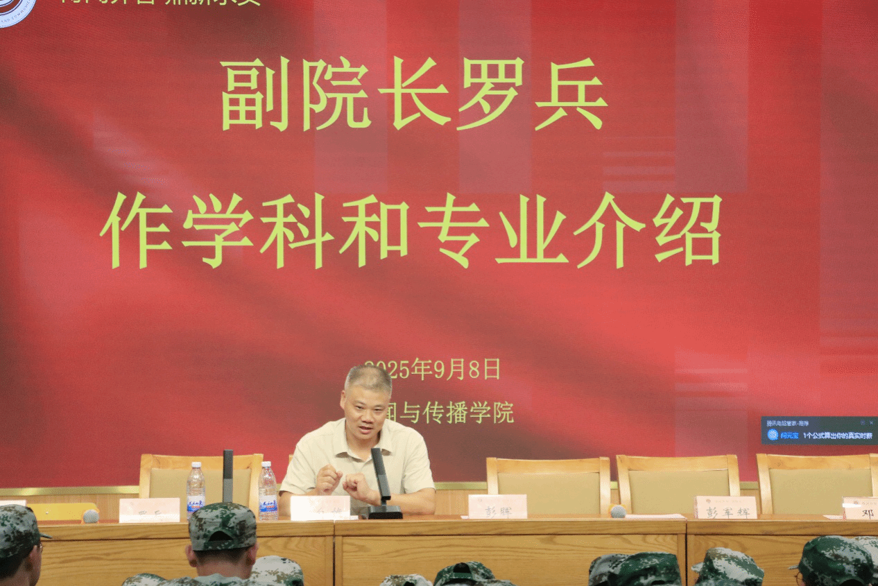 2025年9月8号,我院在仁智楼A107开展学科与专业介绍分享会,新闻与传播学院罗兵副院长为主讲人,2025级新闻与传播学院全体新生参加分享会。